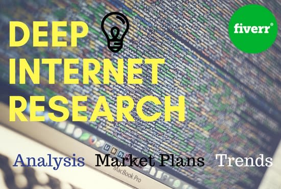 Deep Internet ResearchInternet Research is like a passion of mine. I had worked for a company last 2 years, I deliver them competitor analysis, market trends, audience demands, business ideas etc.