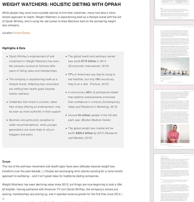 - In-depth case studies on specific brands, campaigns, trends, or innovations